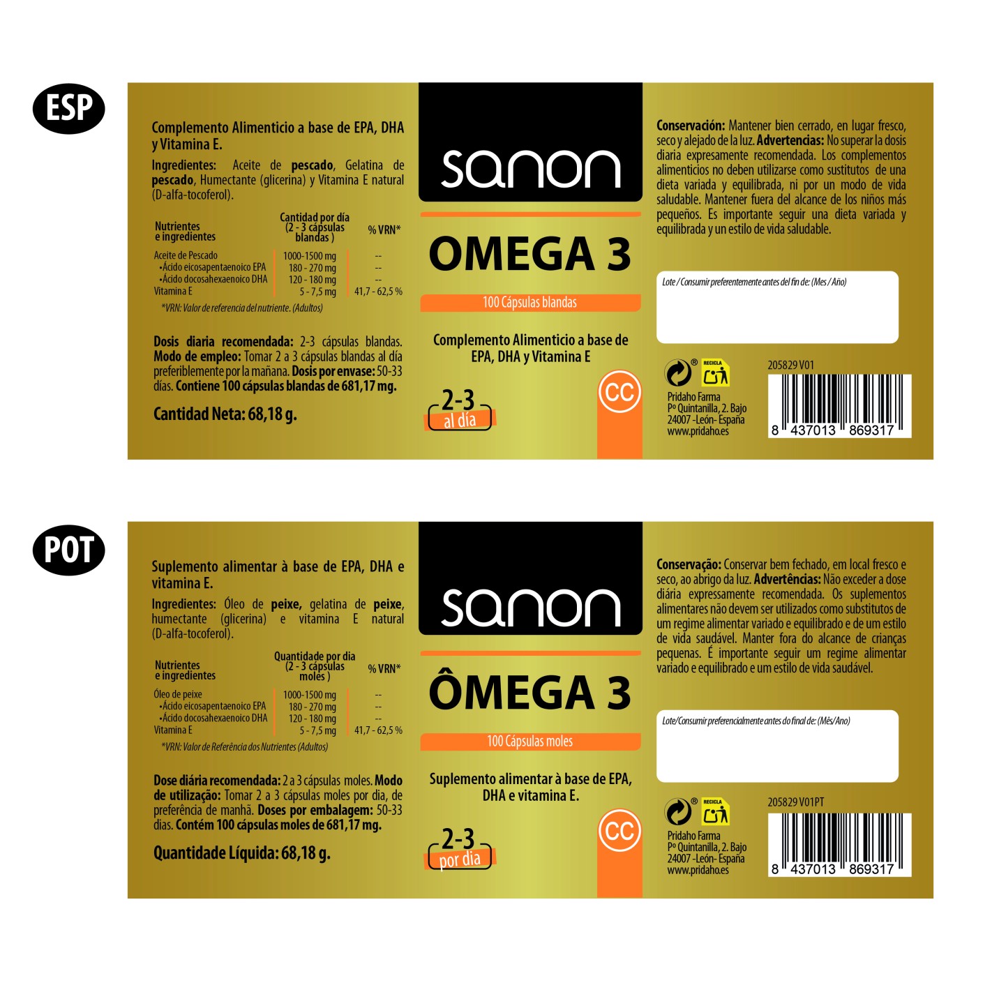 Complemento alimenticio a base de aceite de pescado (EPA y DHA) y vitamina E.