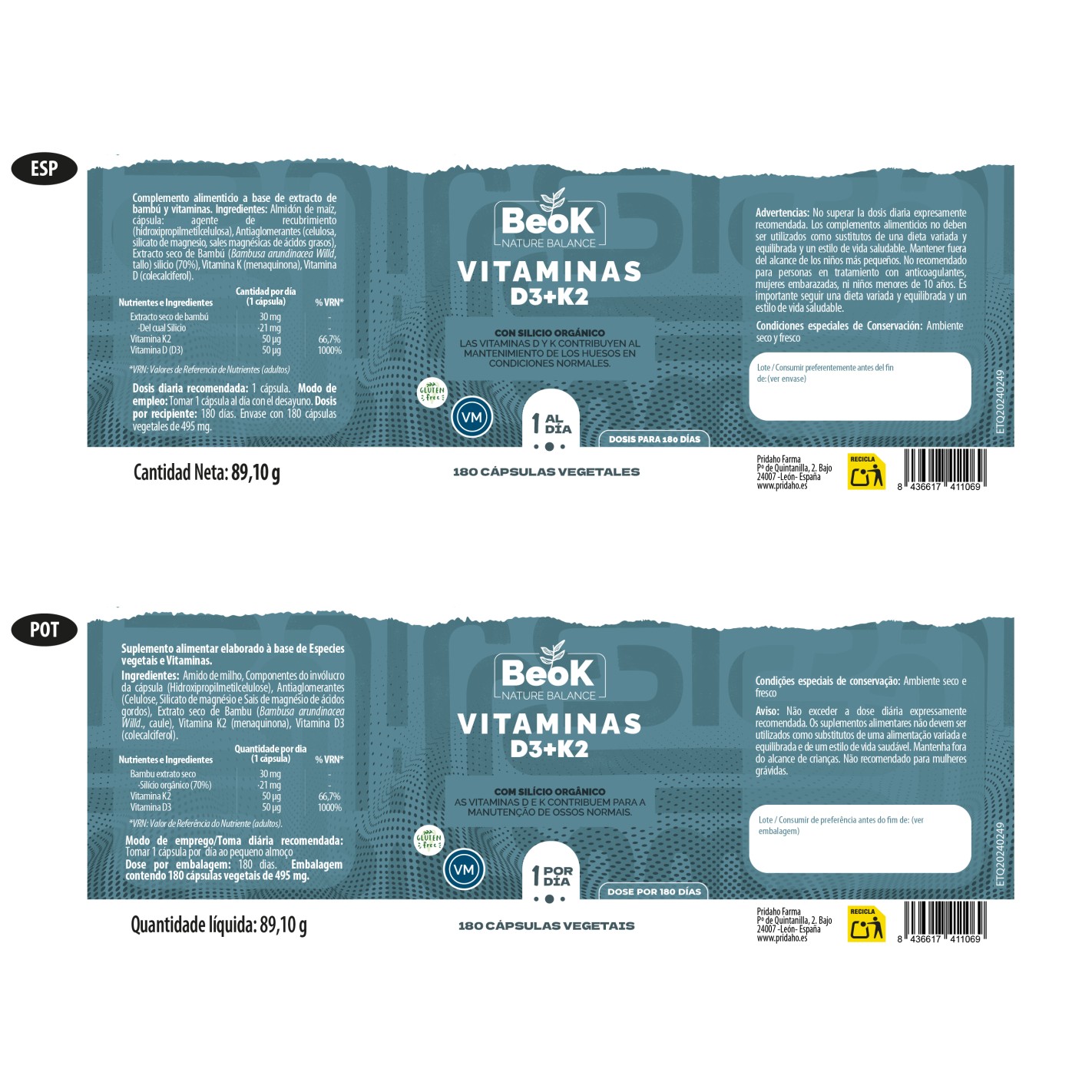 BEOK Vitamina D3 + K2 180 cápsulas vegetales