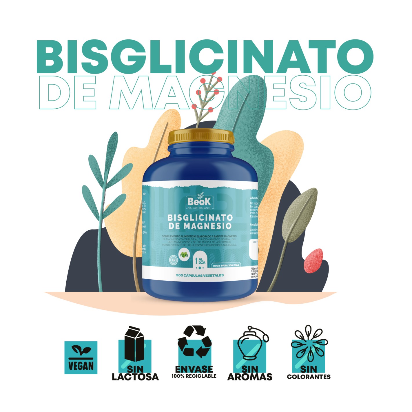 BEOK Bisglicinato de Magnesio 300 cápsulas vegetales