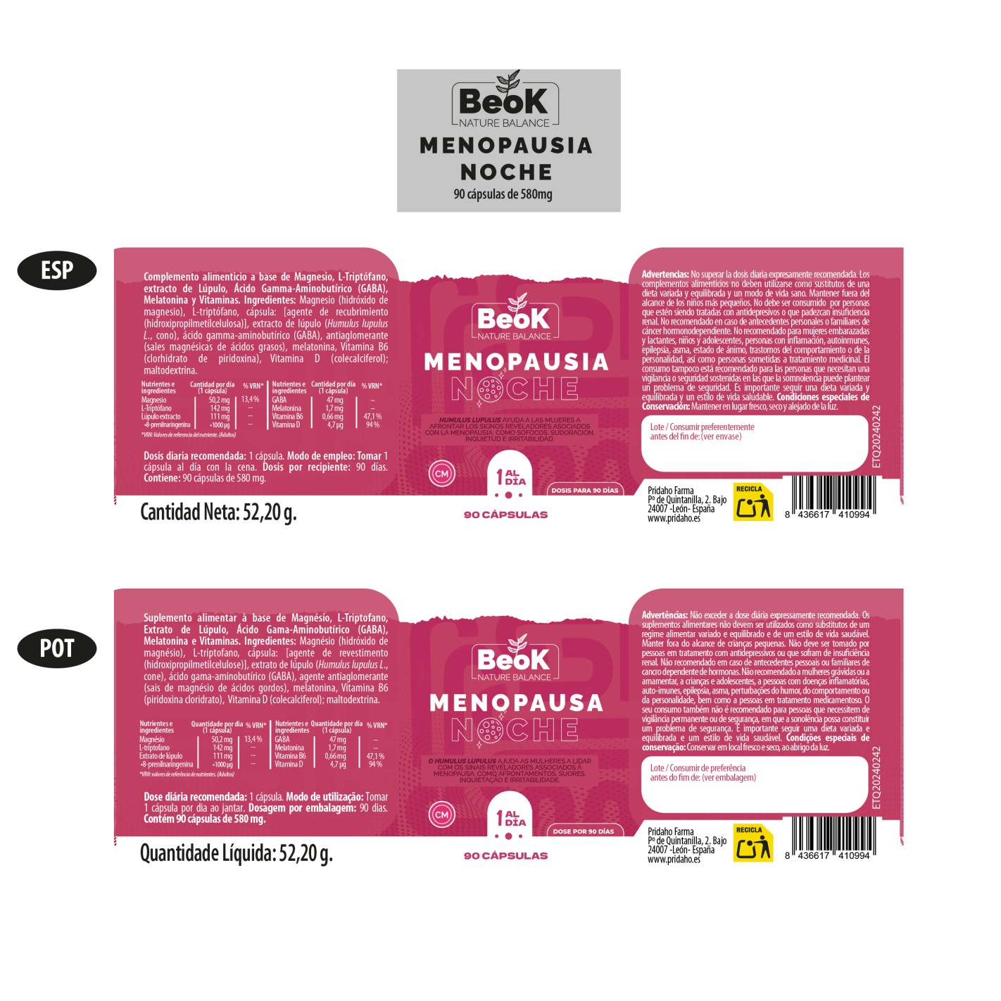 BEOK Menopausia Noche 90 cápsulas