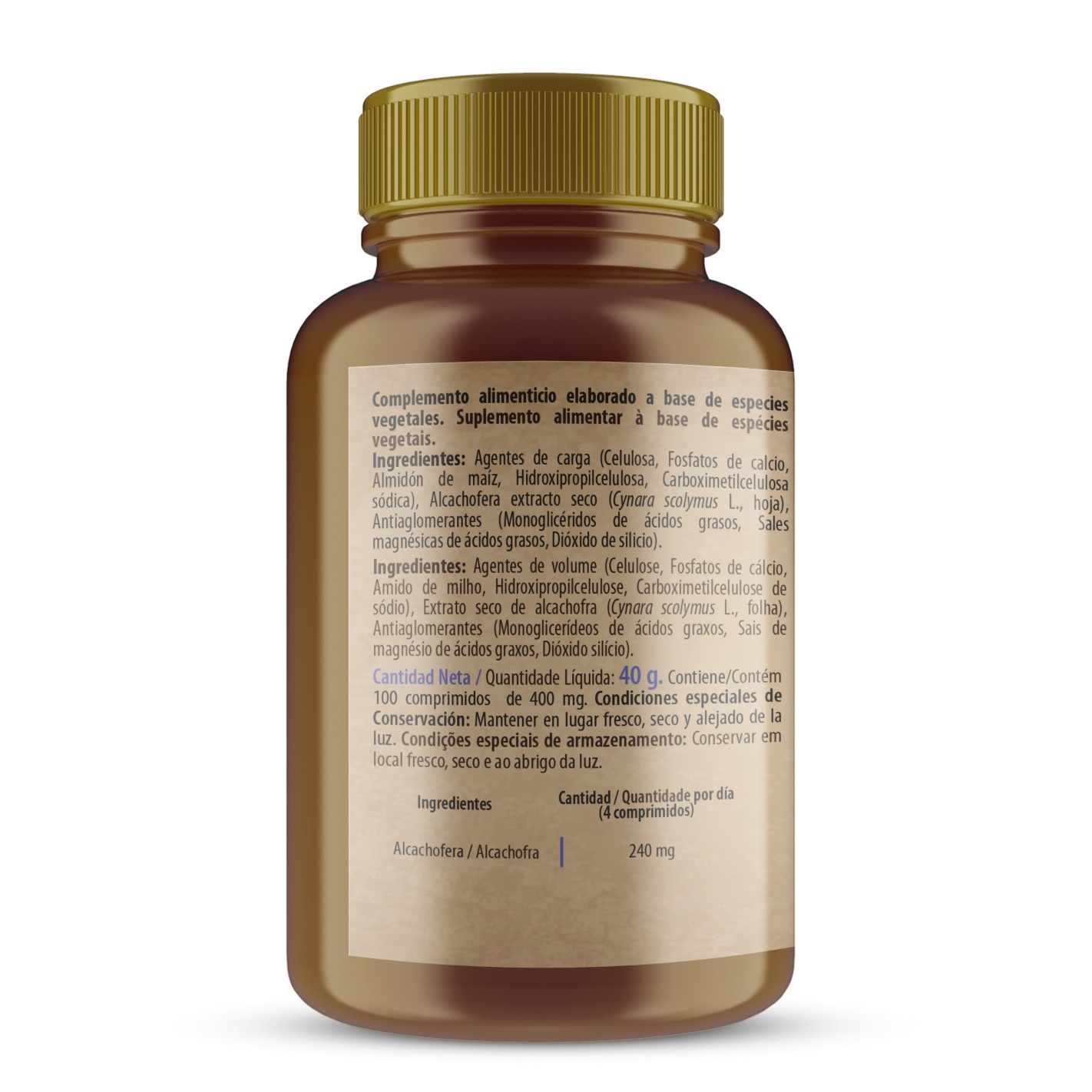 Alcachofa extracto seco 10:1 (Cynara scolymus L., hoja), Almidón de maíz, Componentes de la cubierta de la cápsula (hidroxipropilmetilcelulosa), Agente de carga (celulosa), Antiaglomerantes (silicato magnésico, sales magnésicas de ácidos grasos, dióxido de silicio).