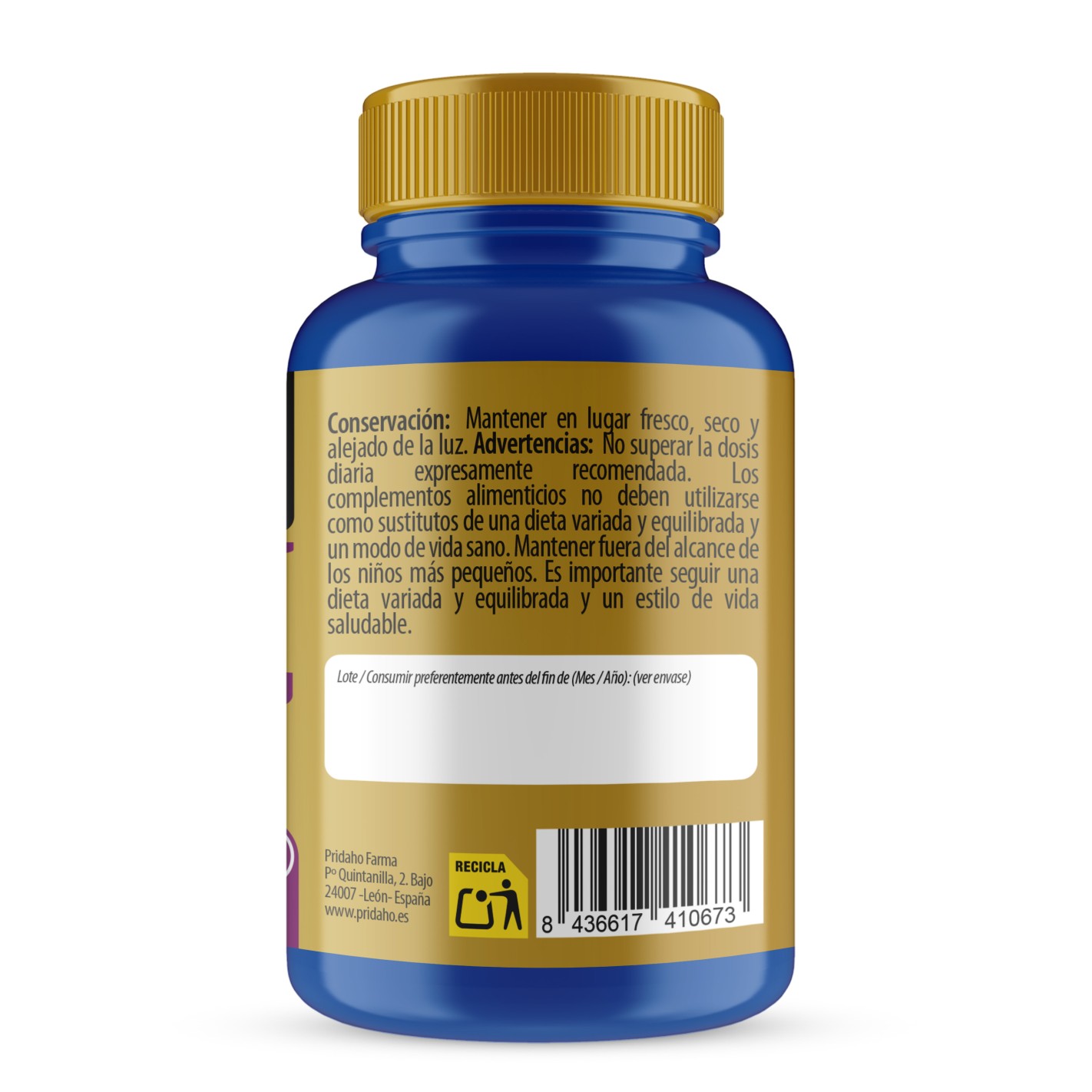 Conservación: mantener en lugar fresco, seco y alejado de la luz. Advertencias: los complementos alimenticios no deben utilizarse como sustitutos de una dieta equilibrada y variada ni un modo de vida sano. No superar la dosis diaria expresamente recomendada. Mantener fuera del alcance de los niños más pequeños. Es importante seguir una dieta variada y equilibrada y un estilo de vida saludable.