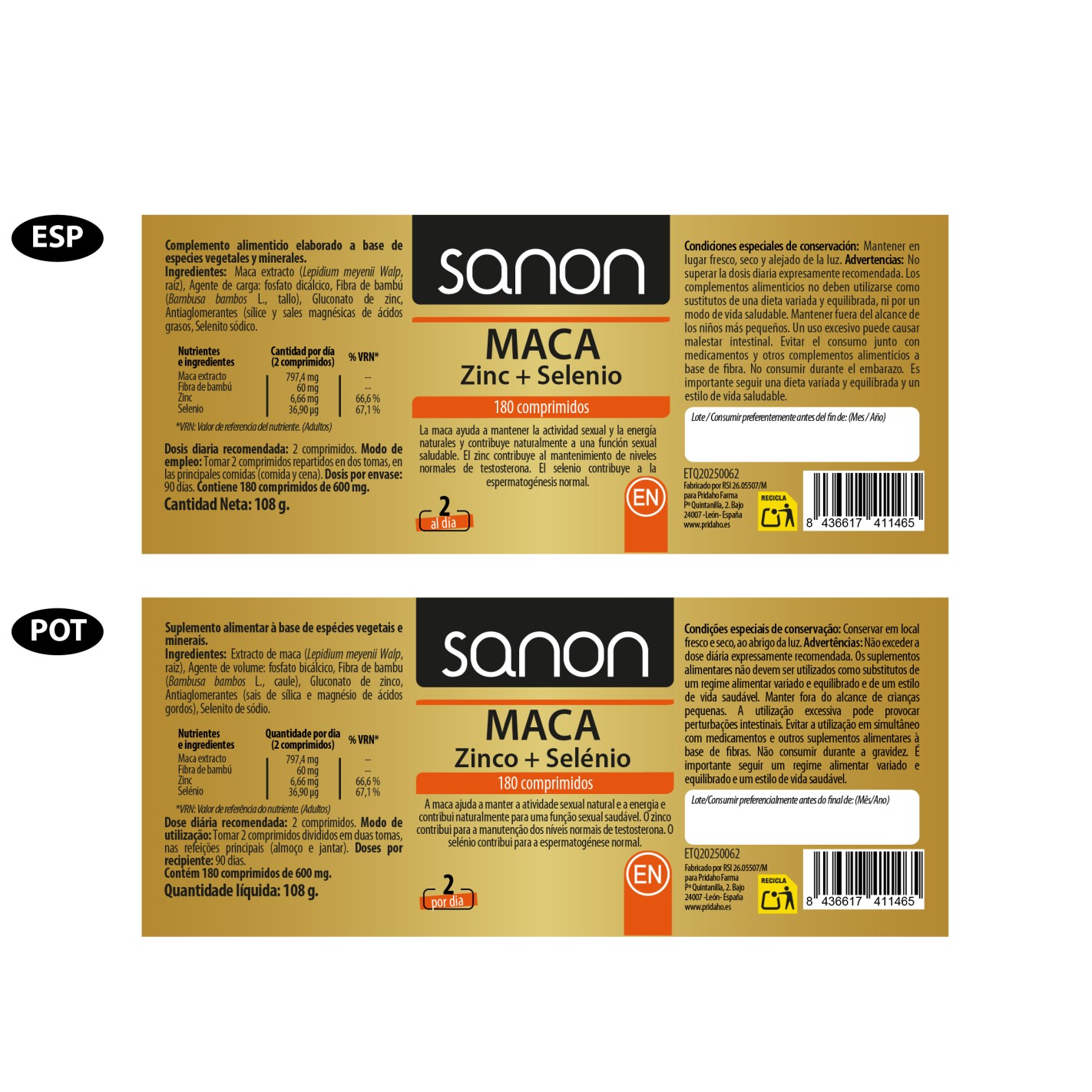 SANON Maca, Zinc + Selenio 180 comprimidos