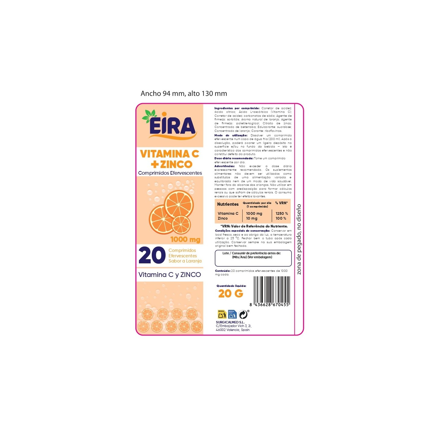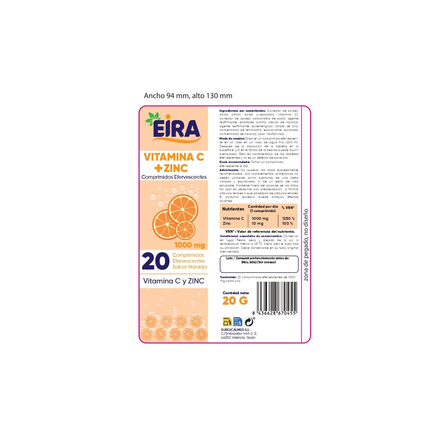 EIRA Vitamina C + Zinc 20 comprimidos efervescentes