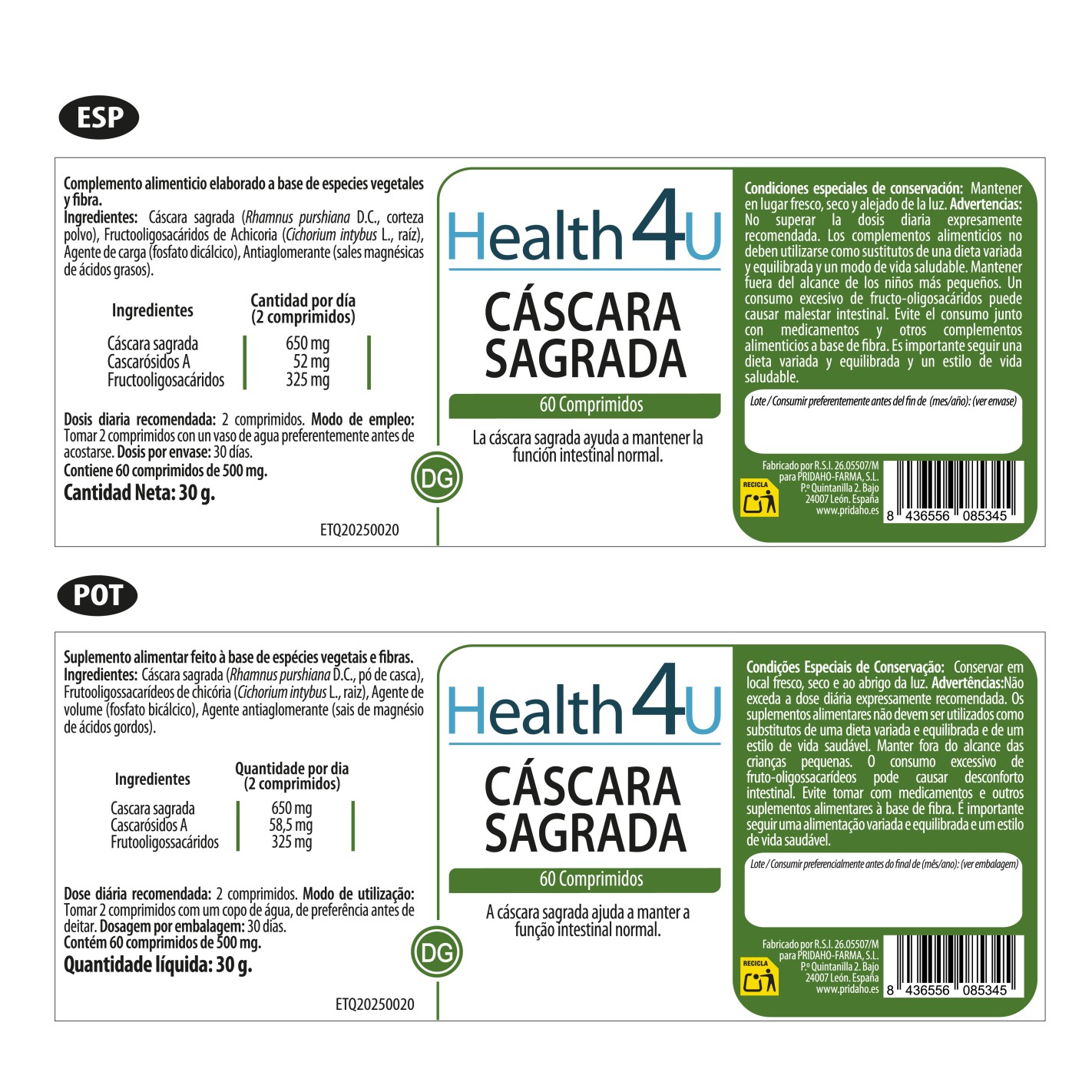 H4U Cáscara Sagrada 60 comprimidos