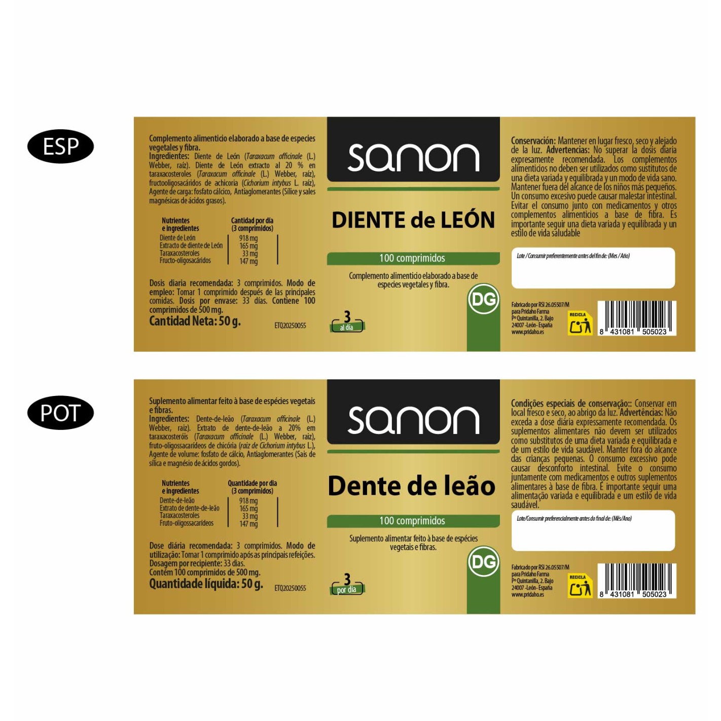 ngredientes por comprimido: 306 mg diente de León (Taraxacum officinale (L.) Webber, raíz ), fructooligosacaridos de achicoria ( Cichorium intybus L. raiz), Agente de carga: fosfato cálcico, Antiaglomeantes (Silice y sales magnésicas de ácidos grasos.