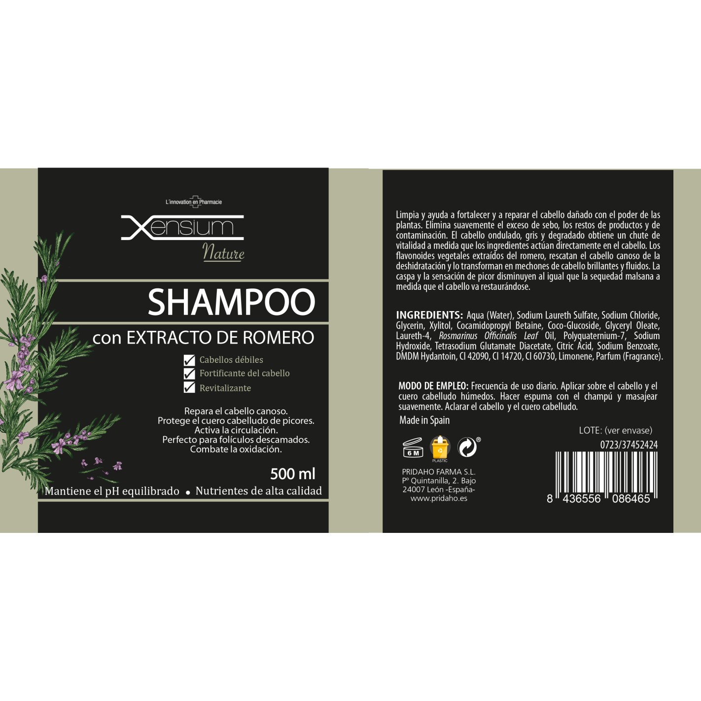 XENSIUM Nature Champú con extracto de Romero 500 ml