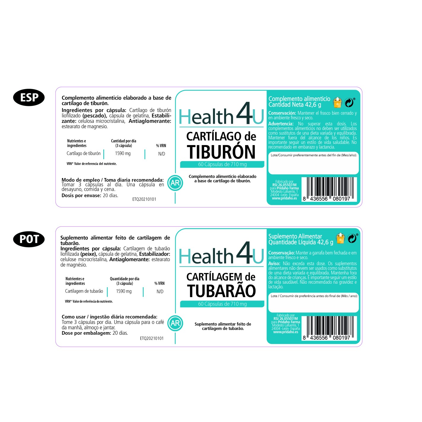 Complemento alimenticio elaborado a base de cartílago de tiburón.