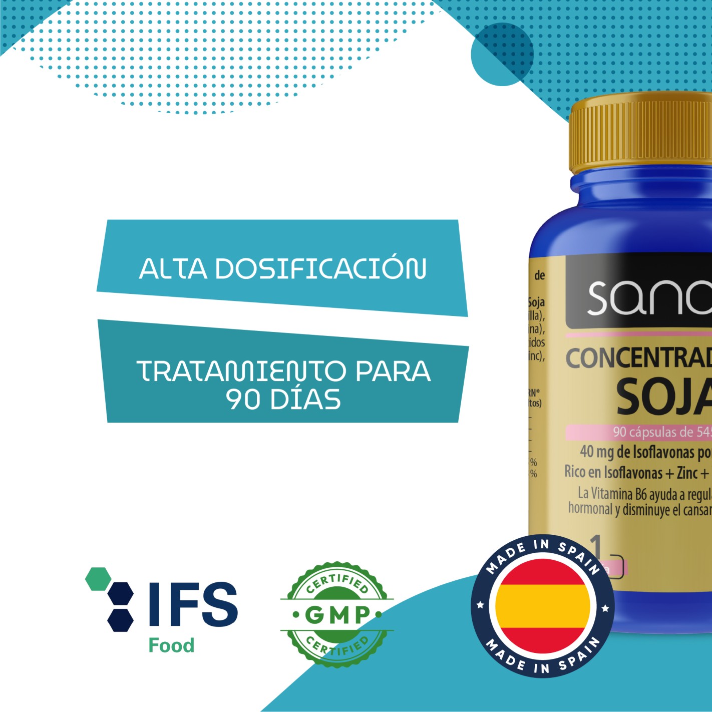 Almidón de maíz, Concentrado de soja (40% de isoflavonas) (glycine Max, semilla) Componentes de la cubierta de la capsula (Gelatina) Antiaglomerantes (Celulosa, Sales magnésicas de ácidos grasos y Silicato de magnesio), Zinc (Gluconato de Zinc), vitamina B6 (Clorhidrato de Piridoxina).