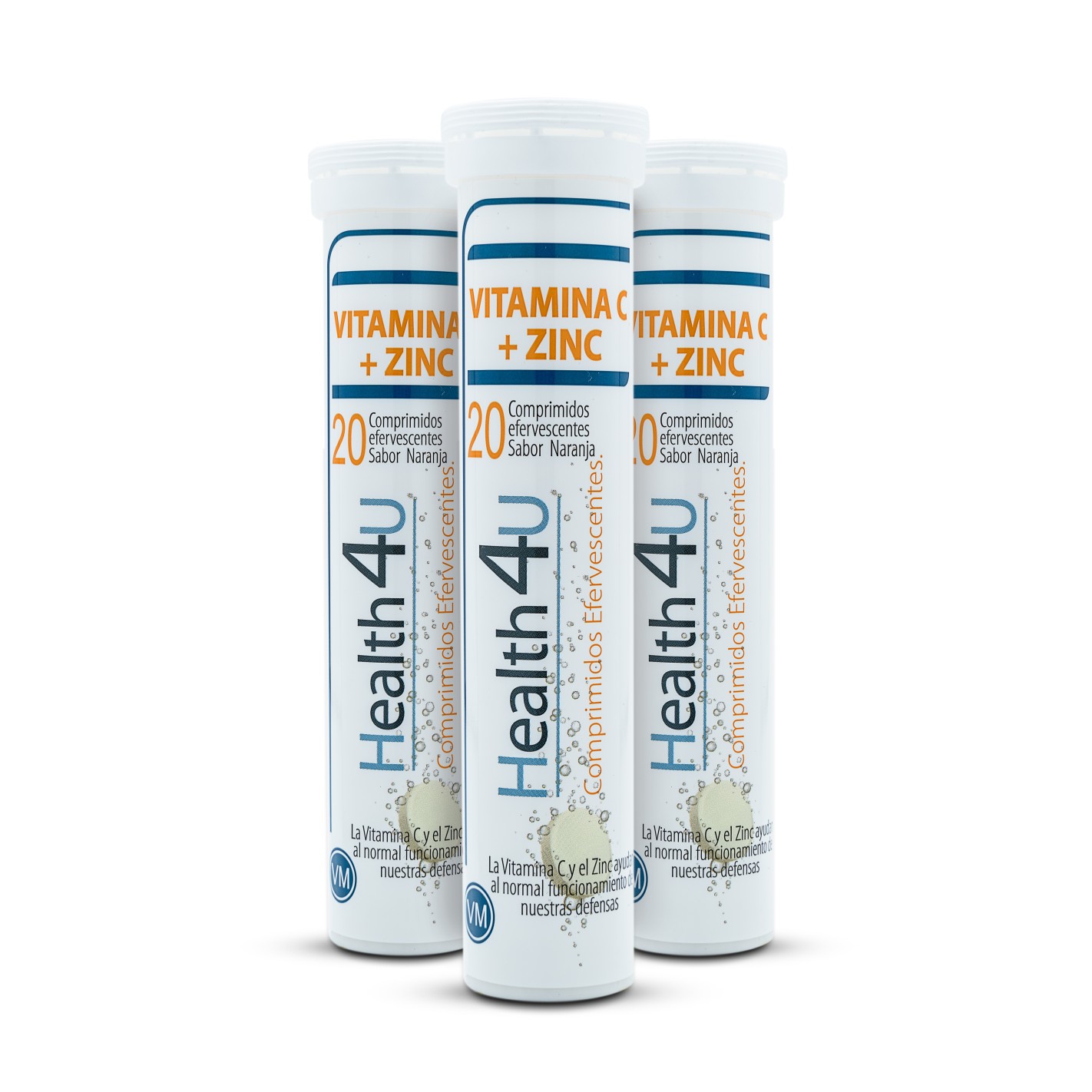H4U Vitamina C + Zinc vitaminas y minerales 20 comprimidos efervescentes pack 3