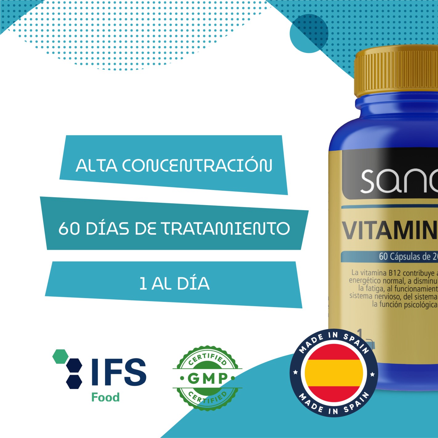 Complemento alimenticio a base de vitamina B12.