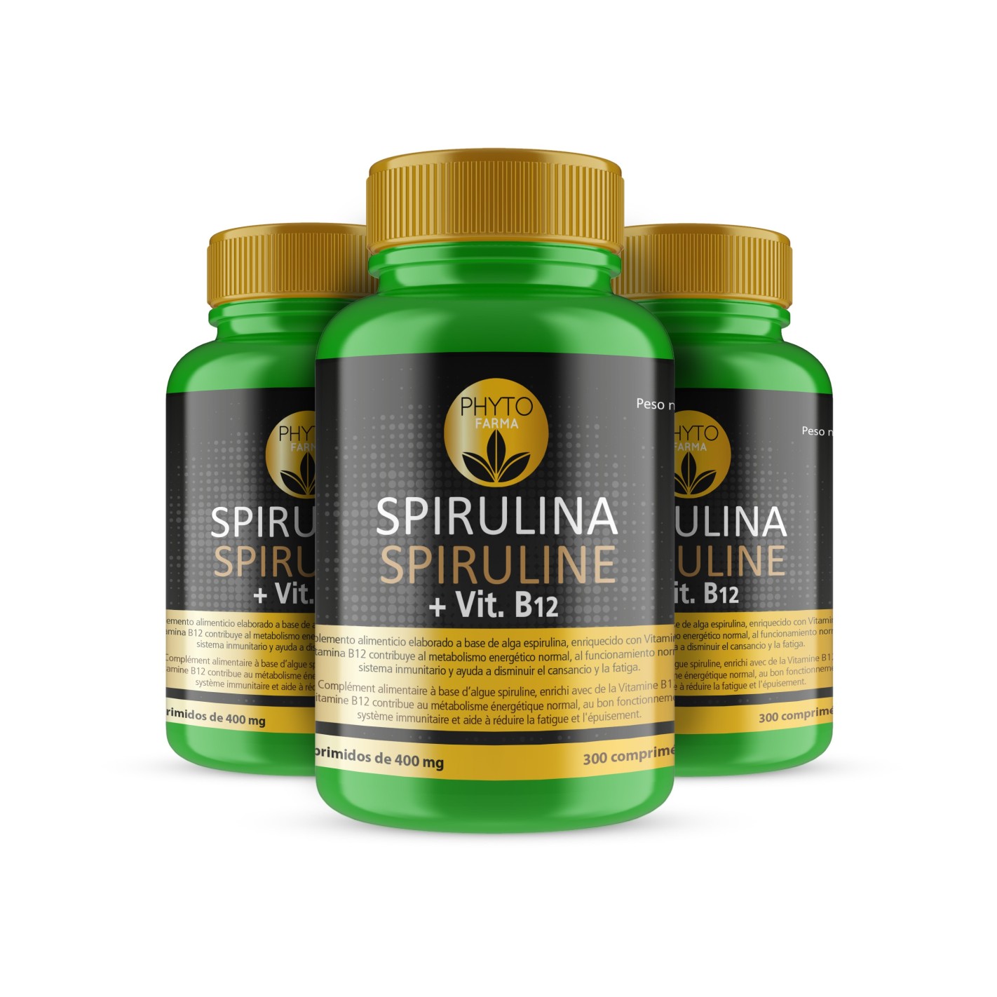 PHYTOFARMA Spirulina + vitamina B12 300 comprimidos Pack 3