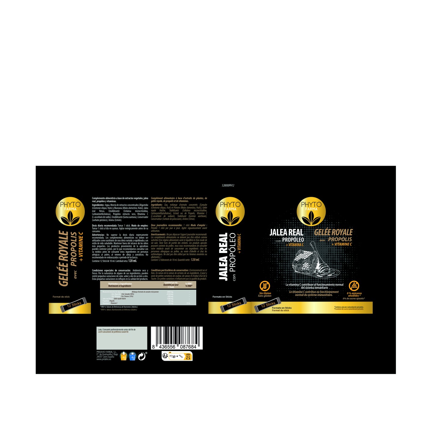 PHYTOFARMA Jalea real con propóleo + Vitamina C 12 stick de 10 ml
