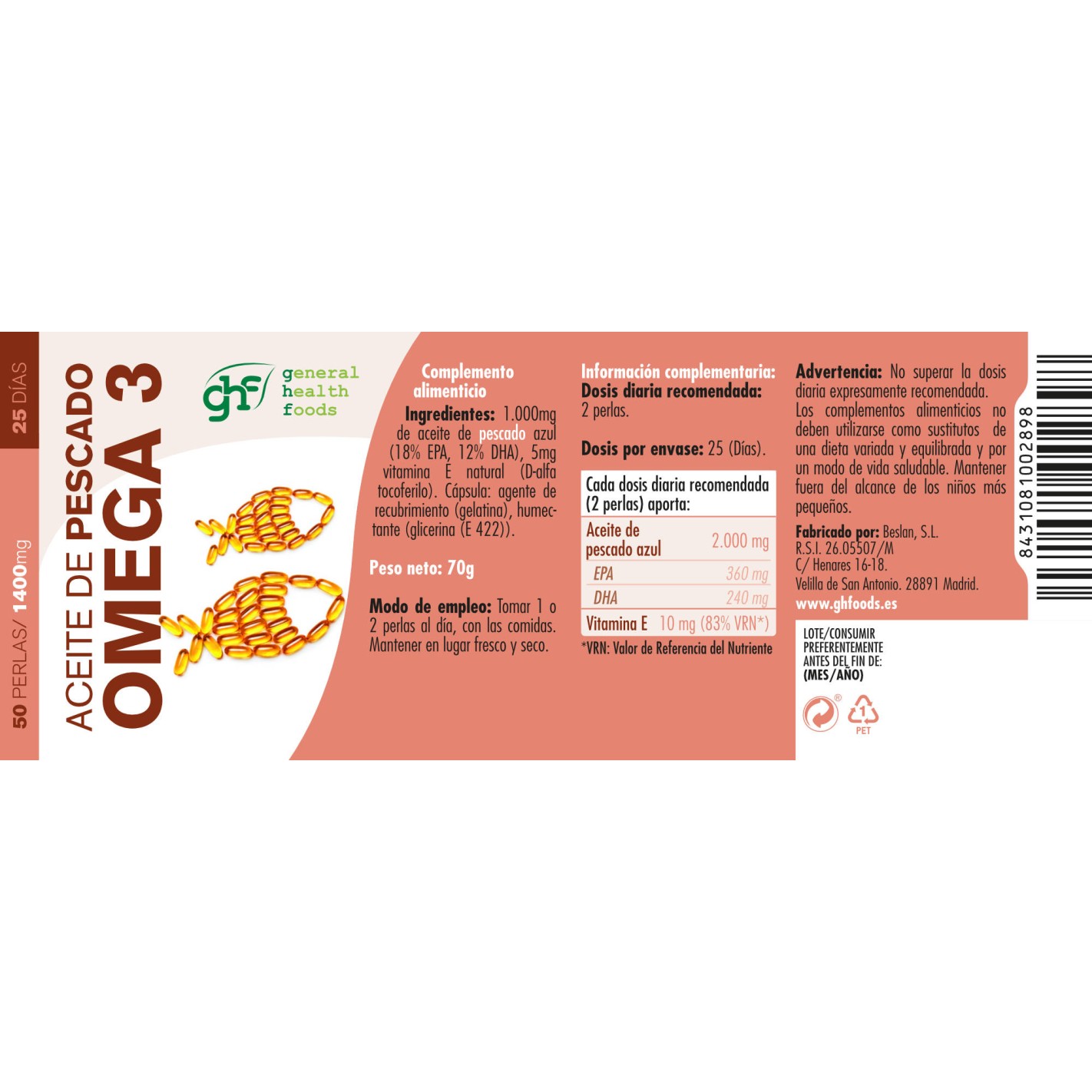 GHF Aceite de Pescado Omega 3 50 perlas