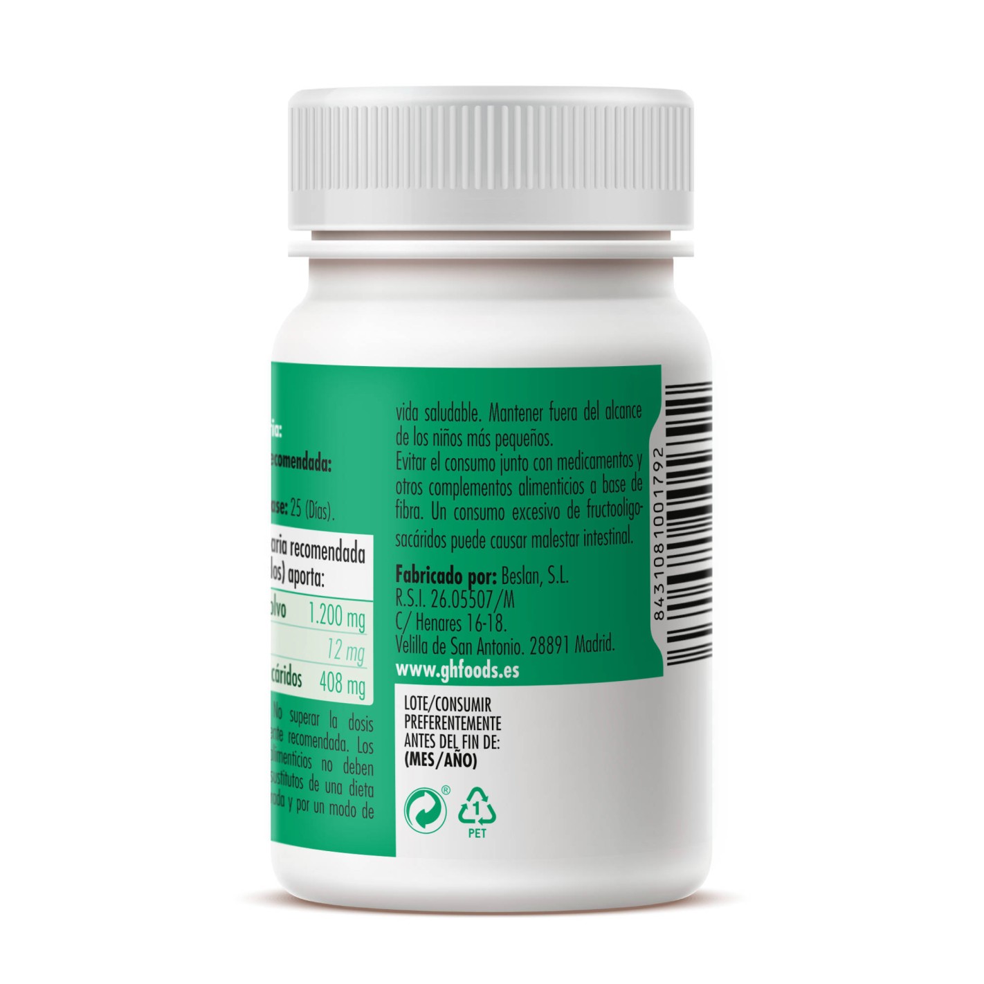Evitar el consumo junto con medicamentos y otros complemtos alimenticios a base de fibra. Un consumo excesivo de fructooligosacáridos puede causar mal estar intestinal.
