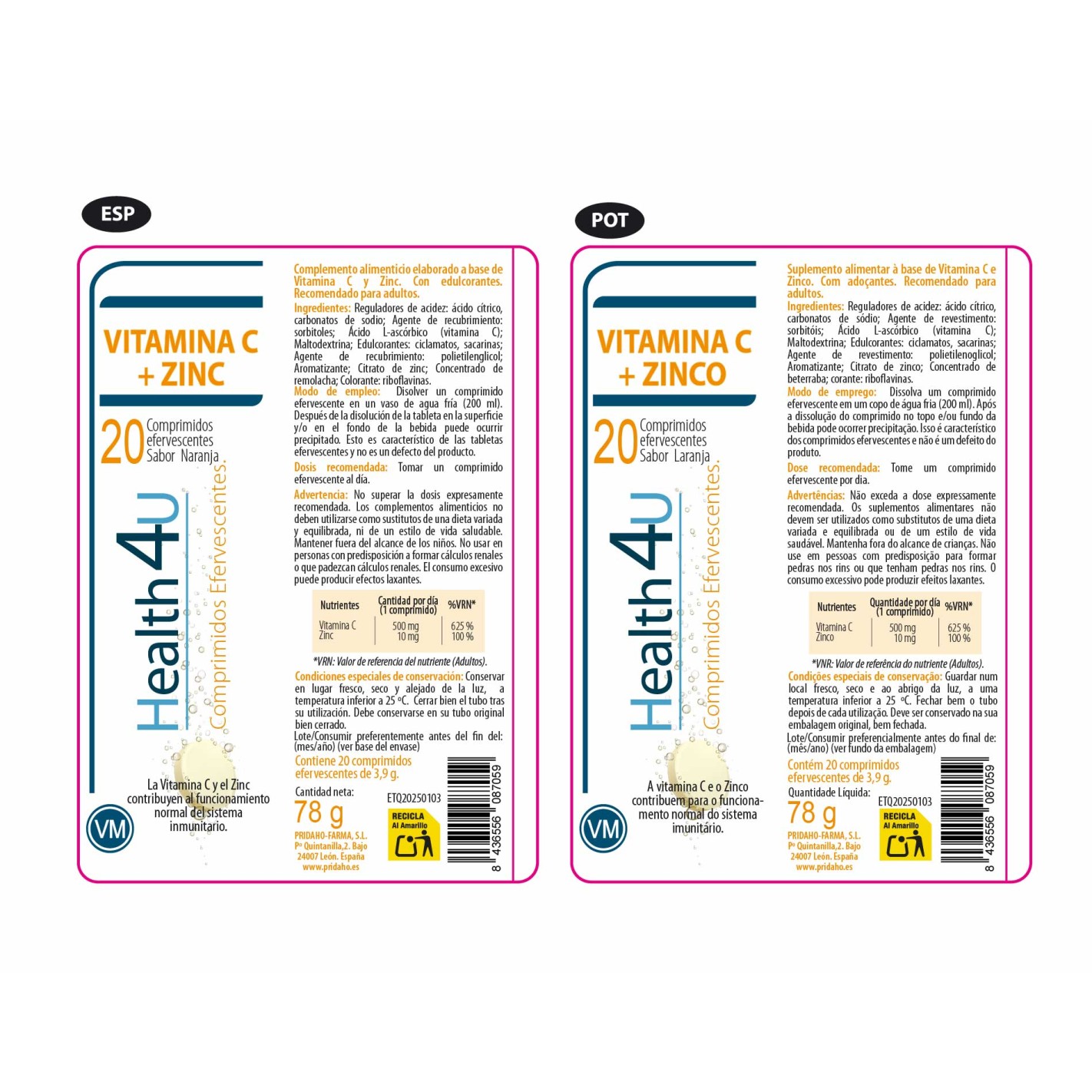 Complemento alimenticio elaborado a base de Vitamina C y Zinc. Con edulcorantes. Recomendado para adultos.
